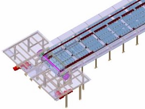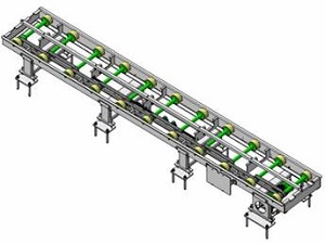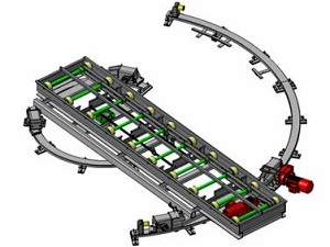 該系統(tǒng)包含的主要輸送機(jī)形式有:滾床、轉(zhuǎn)臺(tái)、橫移機(jī)、橫移鏈、升降機(jī)、鏈床、板鏈等等,由于托盤(pán)載荷較大,對(duì)設(shè)備的承載能力有較高的要求。鏈床主要應(yīng)用于合裝線及相關(guān)托盤(pán)儲(chǔ)存線,它運(yùn)行平穩(wěn)、噪音低、可實(shí)現(xiàn)高速運(yùn)行,尤其適用于自動(dòng)化程度和精度要求高的合裝線。