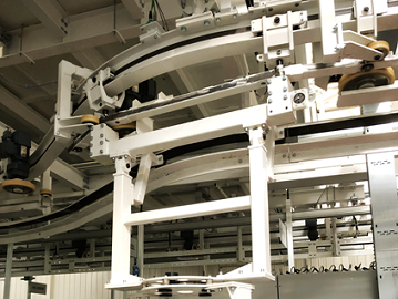 它是一種通過安裝在空中軌道上的摩擦輪來驅(qū)動小車的在軌道中運行的輸送系統(tǒng)。小車下方可連接車身吊具、車門吊具、儀表盤吊具等。