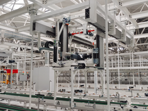 該系統(tǒng)通常適用于有托盤儲存庫區(qū)的多平臺托盤間的切換和分托盤轉(zhuǎn)載的需求的工廠。該系統(tǒng)能夠通過RFID來識別托盤,并完成自動轉(zhuǎn)載,能夠適用于較高的節(jié)拍需求。