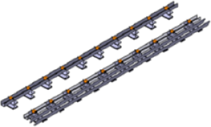 滑板輸送系統(tǒng)由大滑板、摩擦驅(qū)動單元、摩擦制動單元、無動力軌道及相關(guān)滑板重載輸送機組成?;遢斔驮O(shè)備布置于地坑中。在工藝段,滑板下方由無動力軌道承載,它的行進是通過線體尾部的摩擦驅(qū)動和線體頭部的摩擦制動的組合控制來實現(xiàn)的。