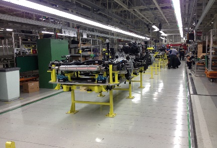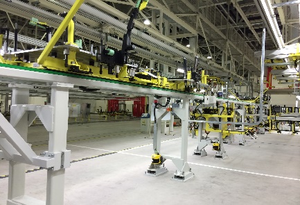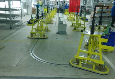 l Front axle subassembly line- floor trolley with tow-chain conveyor